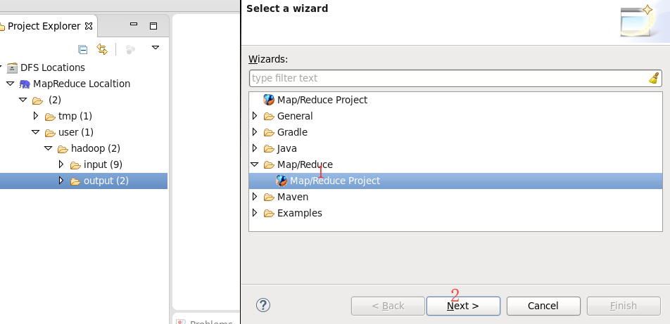 选择 Map/Reduce Project,点击 Next。