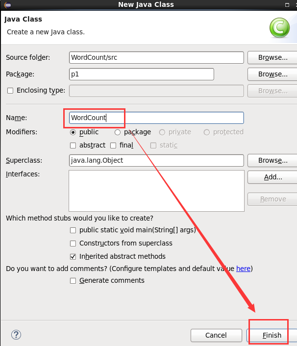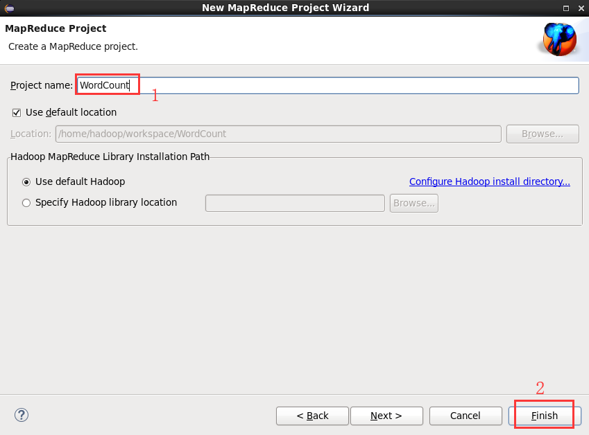 填写 Project name 为 WordCount 即可,点击 Finish 就创建好了项目。