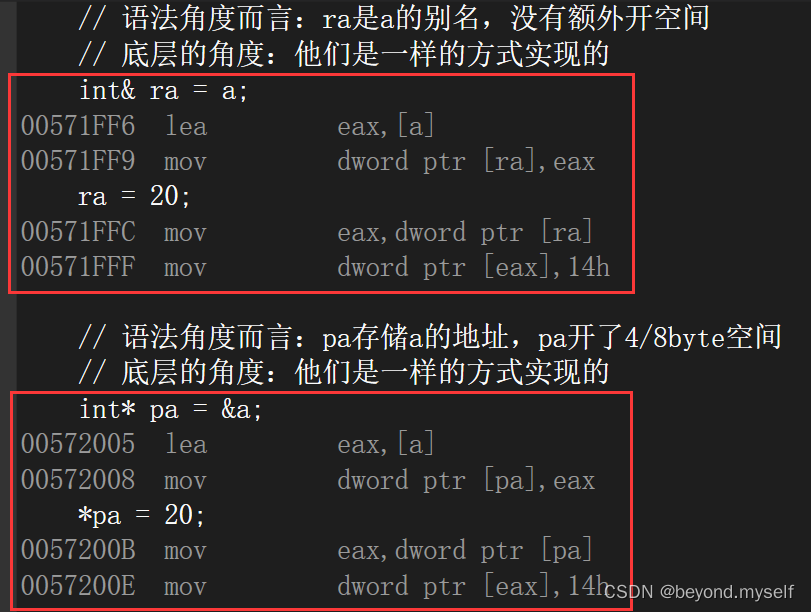 引用不是新定义一个变量,而是给已存在变量取了一个别名,编译器不会为引用变量开辟内存空间,它和它引用的变量共用同一块内存空间。