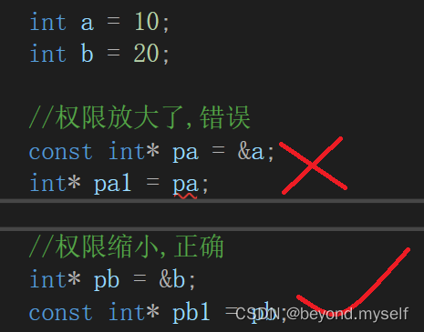 例子1:权限的放大,不能把const给非const