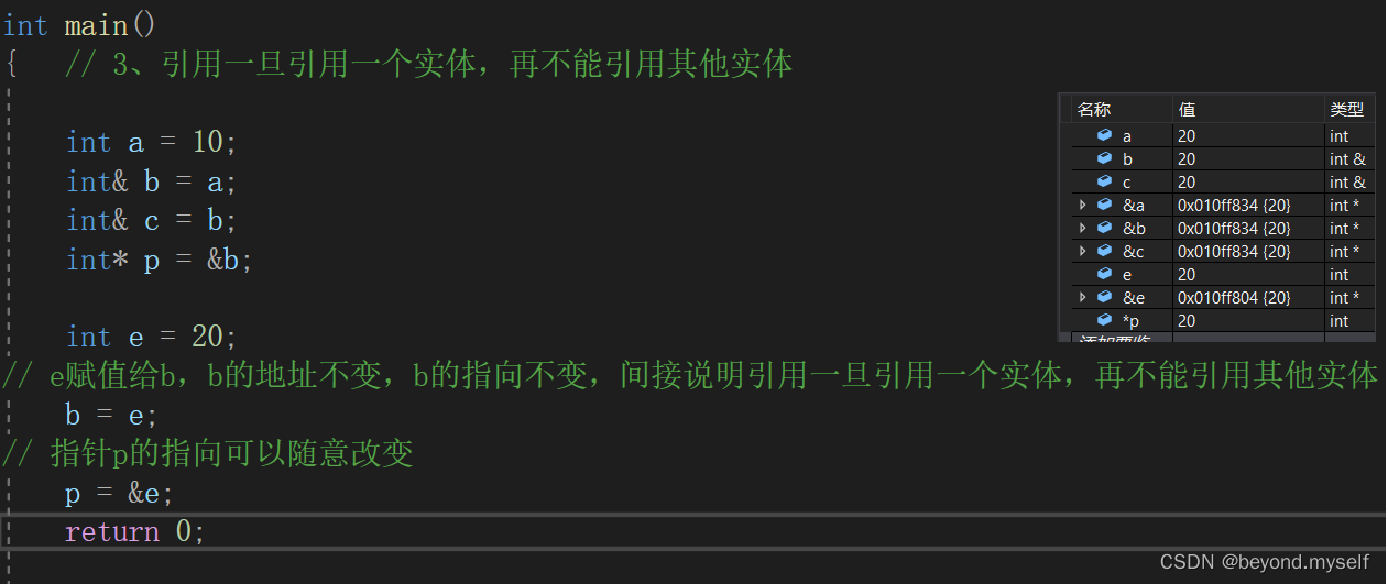 (3). 引用一旦引用一个实体,再不能引用其他实体
