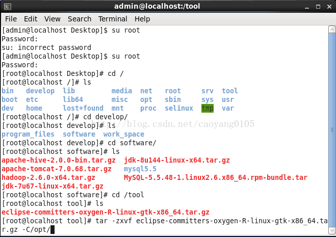 1.解压命令为tar -zxvf eclipse-committers-oxygen-R-Linux-gtk-x86_64.tar.gz -C /opt/