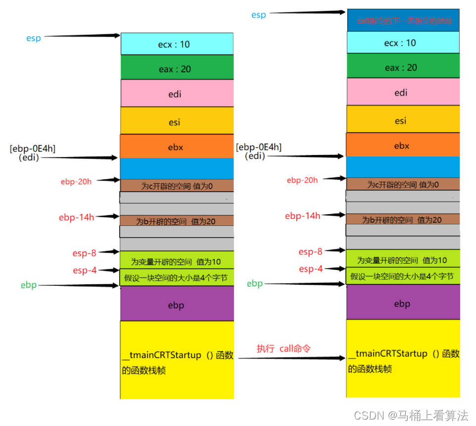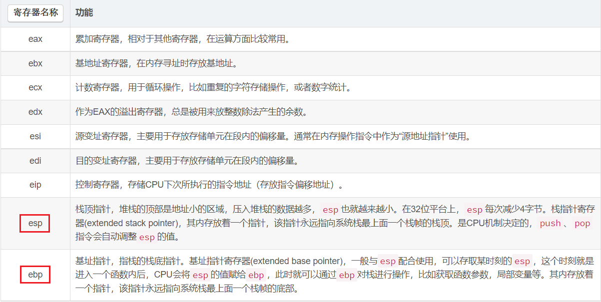 注意:esp和ebp这两个寄存器存放的是地址,是用来维护函数栈帧的。