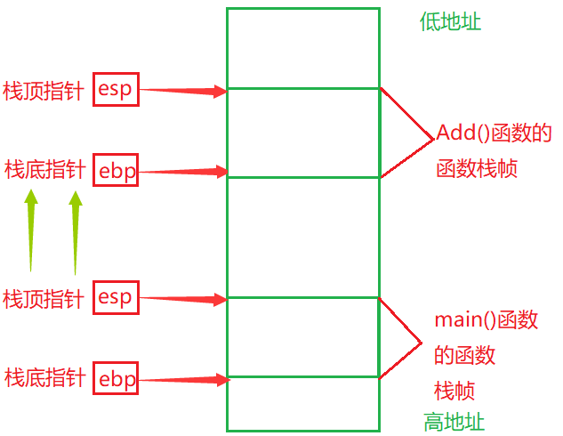 将main函数栈底的值提前保存是为了Add 函数调用结束后,随着Add栈帧的销毁,main 函数的栈顶是很容易找到的,但是main 函数的栈底不容易找到,所以将main函数的栈底地址提前保存。