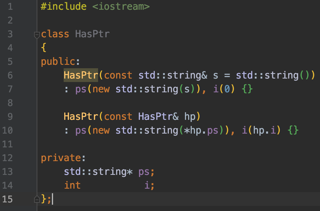 13.5 给定下面的类框架,编写一个拷贝构造函数,拷贝所有成员。你的构造函数应该动态分配一个新的string,并将对象拷贝到ps所指向的位置,而不是拷贝ps本身: