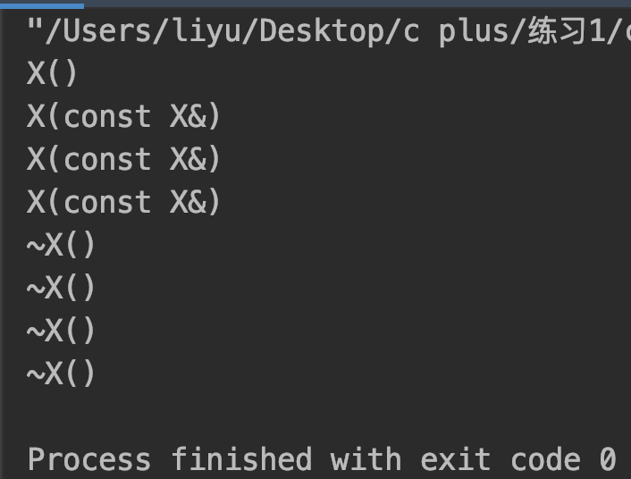 给 X 添加拷贝赋值运算符和析构函数,并编写一个程序以不同的方式使用 X 的对象:将它们作为非引用参数传递;动态分配它们;将它们存放于容器中;诸如此类。观察程序的输出,直到你确认理解了什么时候会使用拷贝控制成员,以及为什么会使用它们。当你观察程序输出时,记住编译器可以略过对拷贝构造函数的调用。
