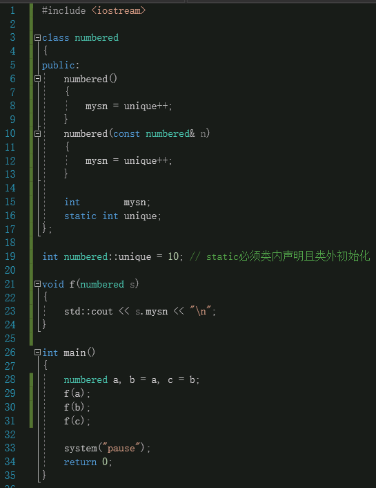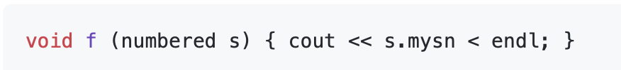 13.14 假定 numbered 是一个类,它有一个默认构造函数,能为每个对象生成一个唯一的序号,保存在名为 mysn 的数据成员中。假定 numbered 使用合成的拷贝控制成员,并给定如下函数: