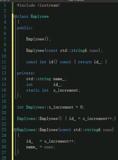 13.18 定义一个 Employee 类,它包含雇员的姓名和唯一的雇员证号。为这个类定义默认构造函数,以及接受一个表示雇员姓名的 string 的构造函数。每个构造函数应该通过递增一个 static 数据成员来生成一个唯一的证号。