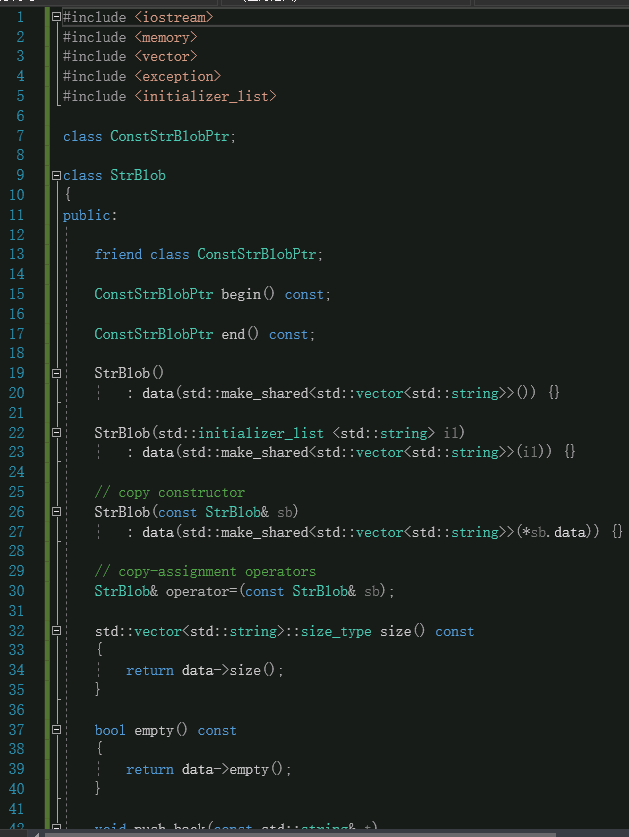 13.26 对上一题中描述的 strBlob 类,编写你自己的版本。