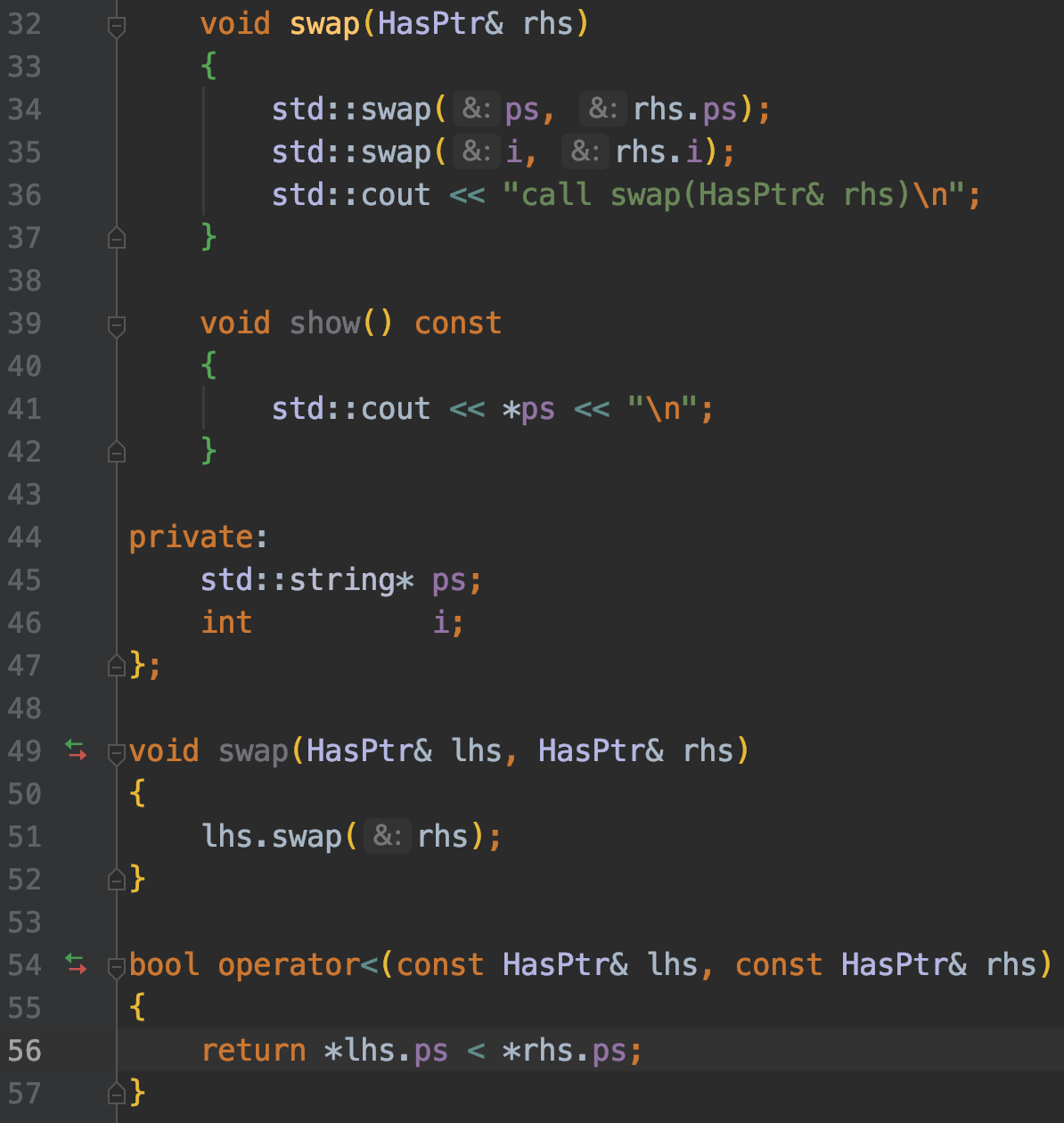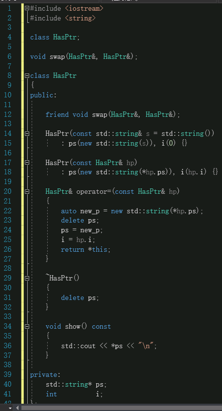 13.30 为你的类值版本的 HasPtr 编写 swap 函数,并测试它。为你的 swap 函数添加一个打印语句,指出函数什么时候执行。