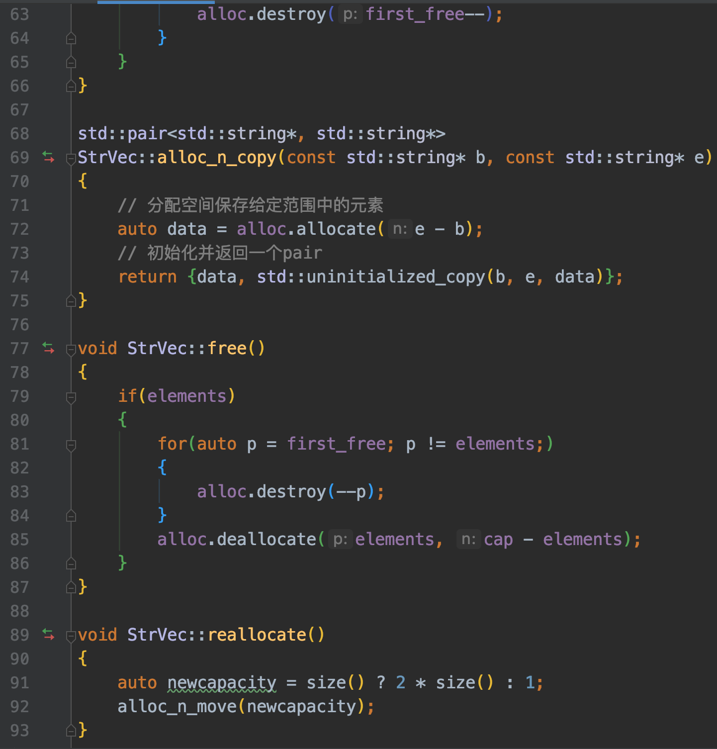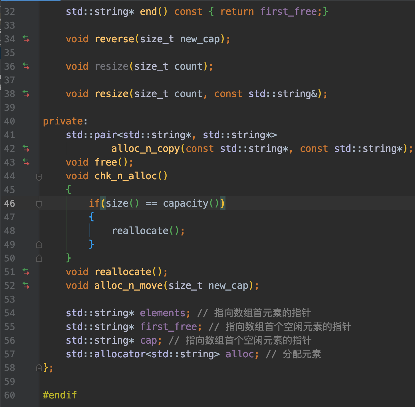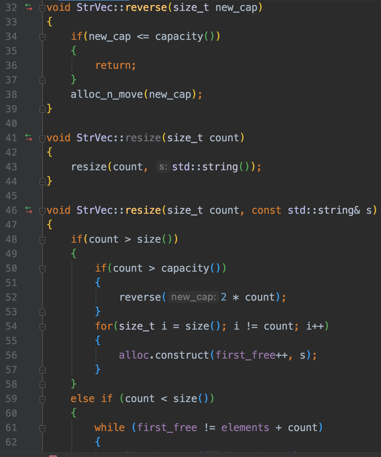 13.39 编写你自己版本的 StrVec,包括自己版本的 reserve、capacity 和resize。