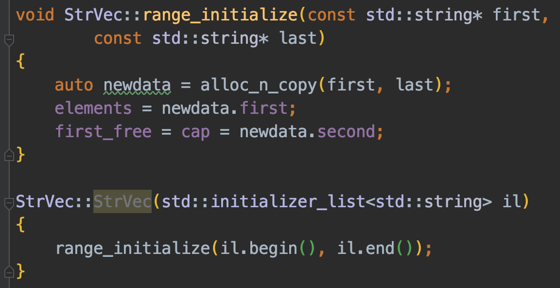 13.40 为你的 StrVec 类添加一个构造函数,它接受一个 initializer_list<string> 参数。