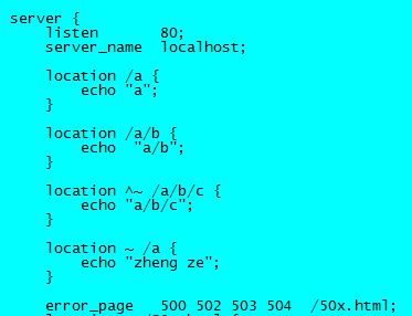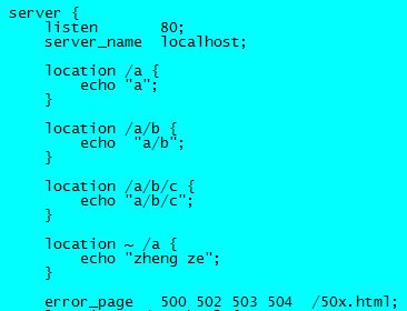 当我们以http://172.17.0.2/a/b/c去访问时,虽然安装一般匹配的规则,1,2,3,4都会被命中,但最终还是被4覆盖,执行location4,屏幕输出“zheng ze”