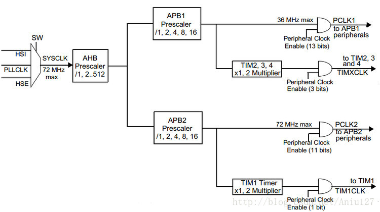 这个问题涉及到RCC时钟部分,如下图所示: