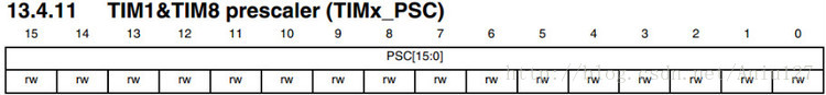 上述公式中TIM_Prescaler涉及到寄存器TIMx_PSC