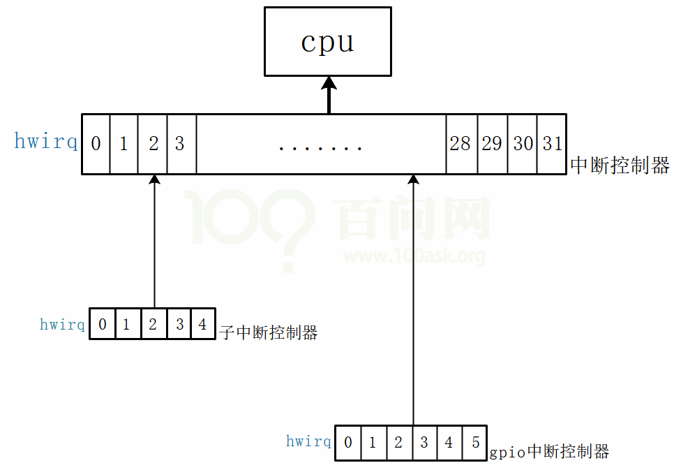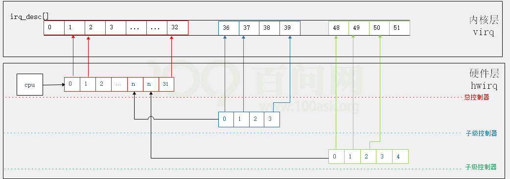 (先调用root irq controller对应的函数, 再调用子控制器的函数, 再调用更下一级控制器的函数...)