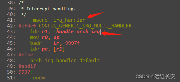 那么,也就是说__irq_usr和__irq_svc,都是通过irq_handler来处理中断。