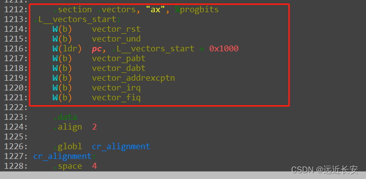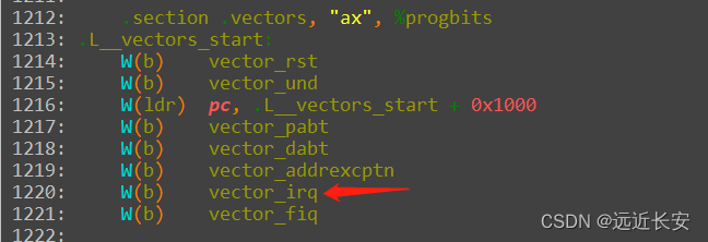 打开archarmkernelentry-armv.S,可以找到一个vectors,里面存放的就是异常向量。