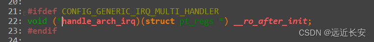 可以看到,irq_handler是一个宏,handle_arch_irq是一个函数指针,最终会调用到handle_arch_irq所指向的函数。