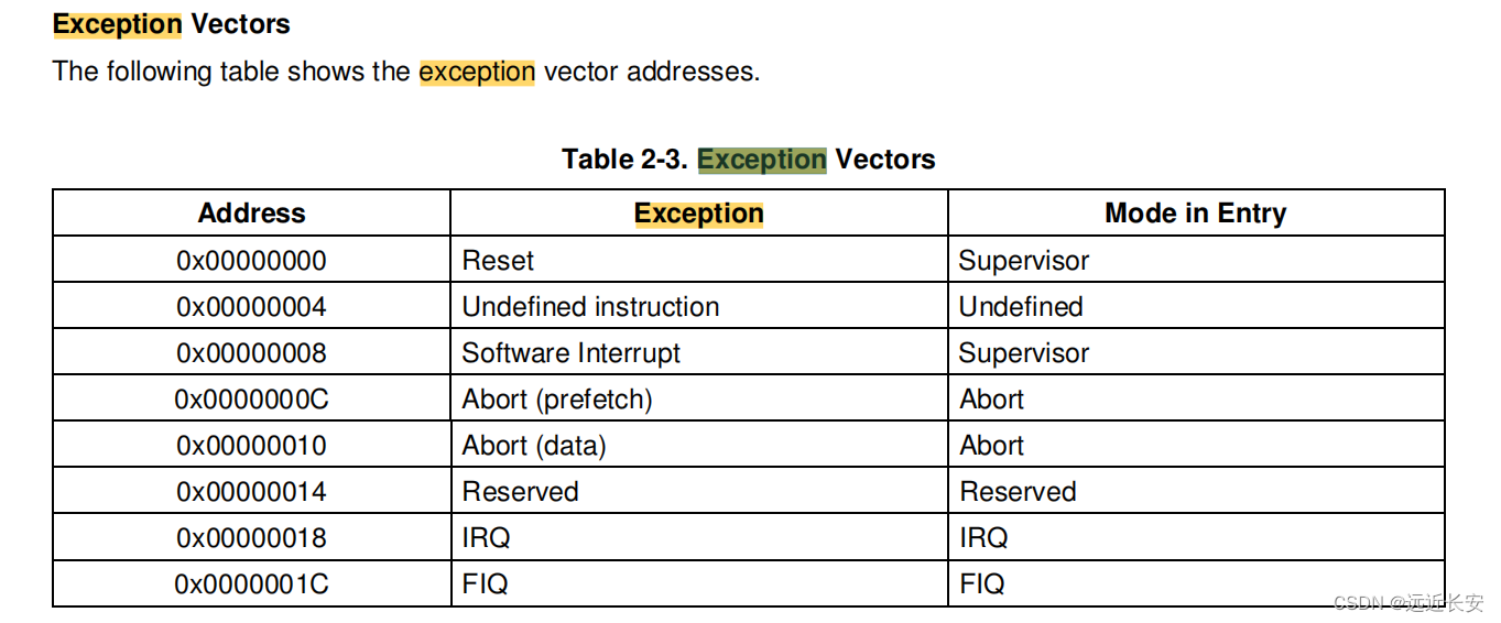 对于其他芯片,vector的存放地址可能不一样。但是不管怎么样,对于大部分的芯片来说,它的软件中都应该保存一个vector,用来处理各种异常。