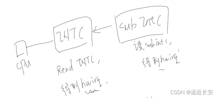 假设有CPU,中断控制器INTC,还有下一级的中断控制器subINTC。