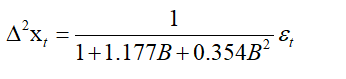 ACF拖尾,PACF二阶截尾,建立ARIMA(2,2,0)