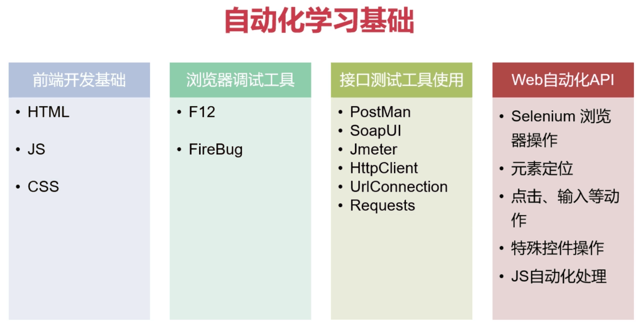 内容涉及:测试理论、Linux基础、MySQL基础、Web测试、接口测试、App测试、管理工具、Python基础、Selenium相关、性能测试、LordRunner相关等