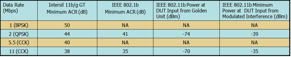 ACR (dBm) = Minimum Power at DUT Input from Modulated Interference (dBm) - Power at DUT Input from Golden Unit (dBm)