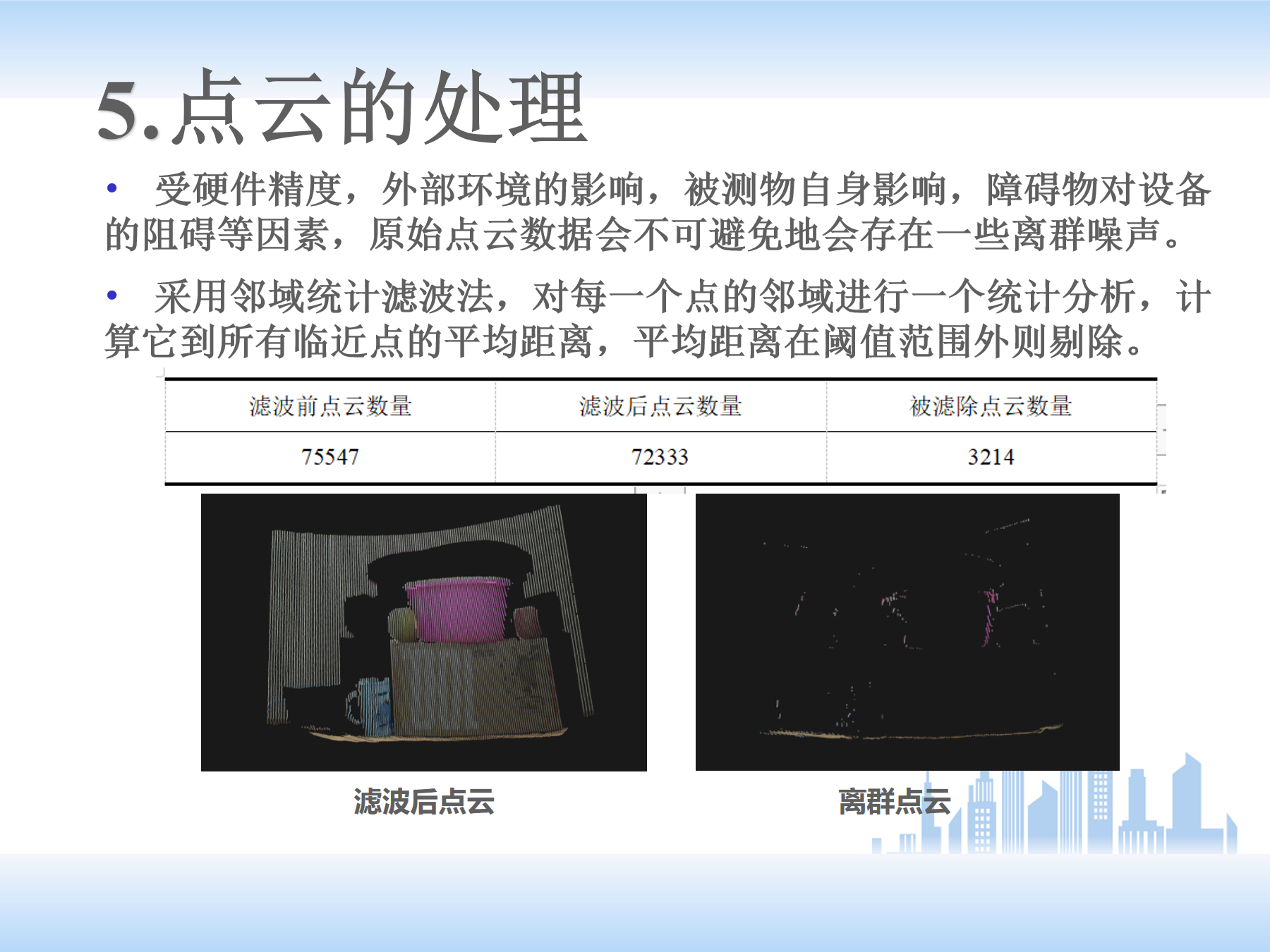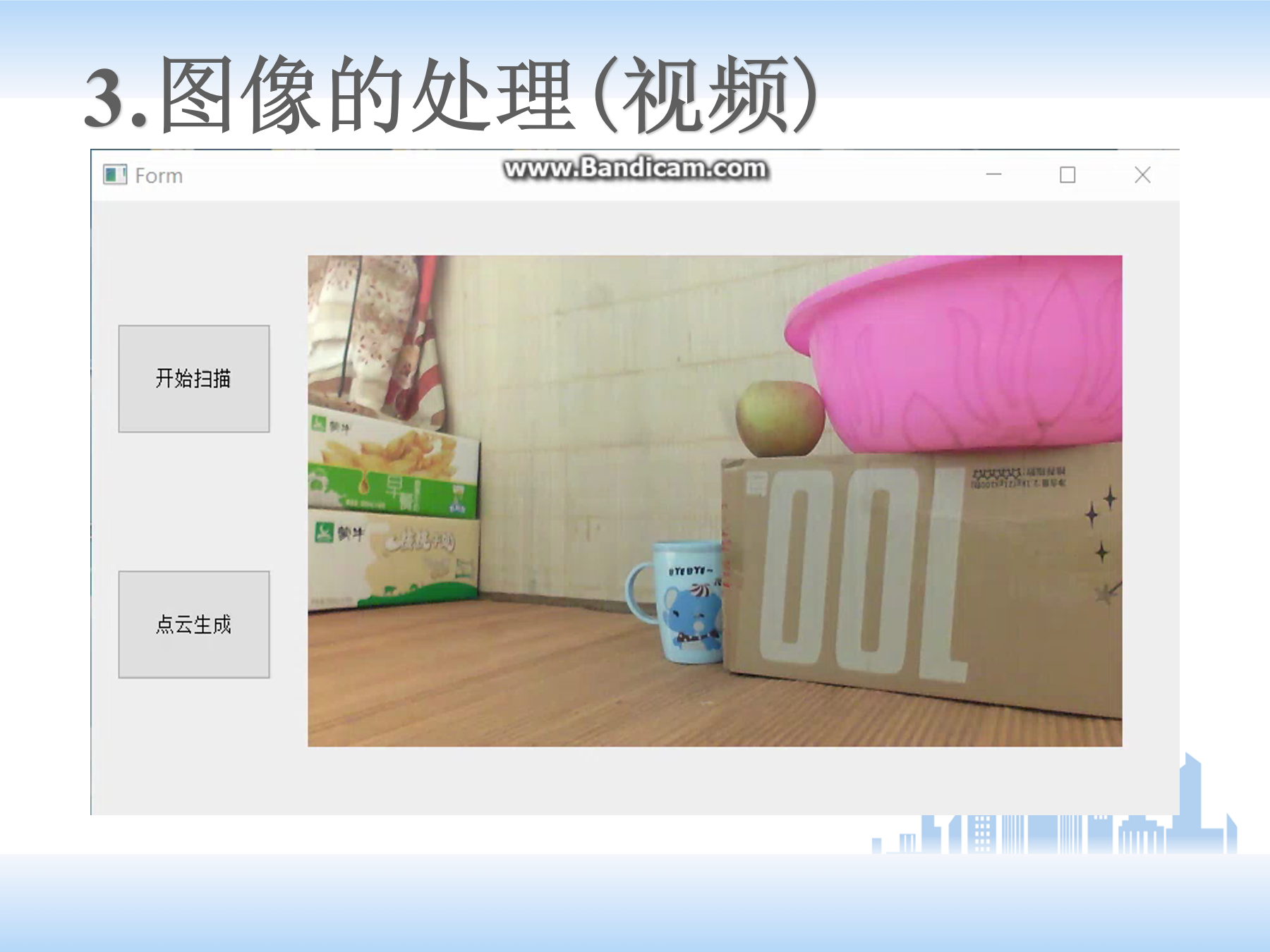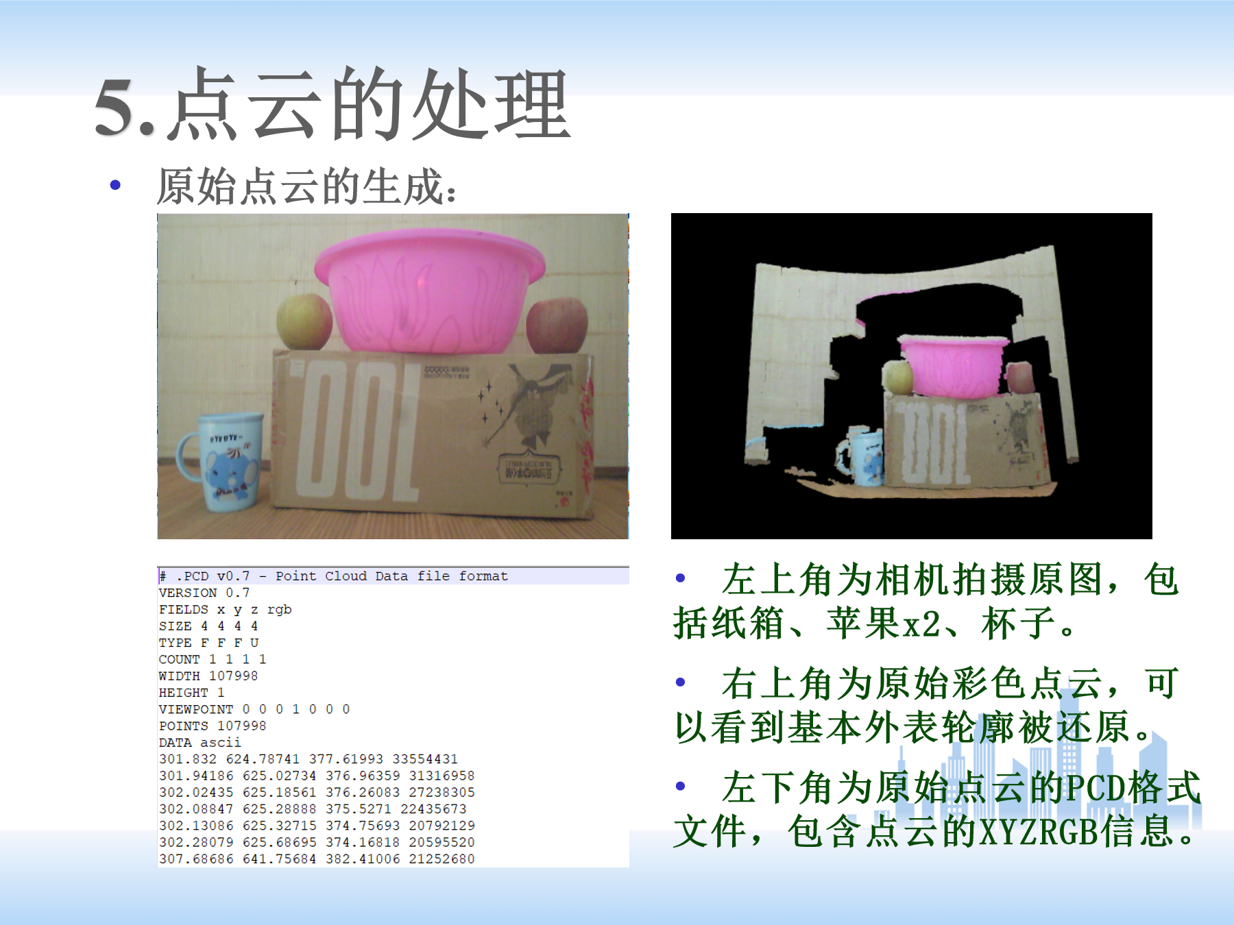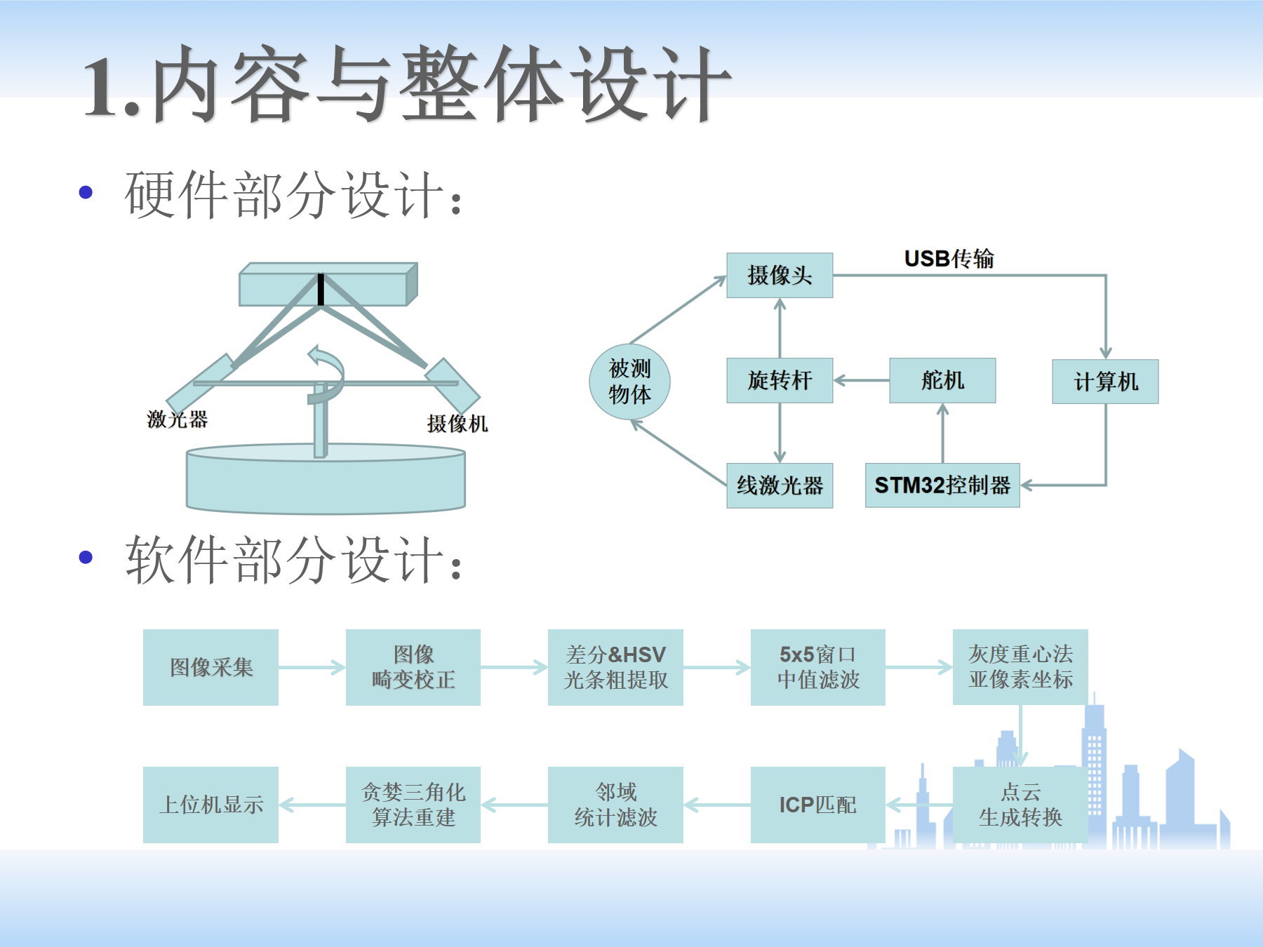 (5)下面是点云的处理。正常顺序是先搭建平台,然后标定,后边提取线激光,得到二维坐标,再根据公式转换成三维的点云数据。再调用PCL点云库进行后续处理。