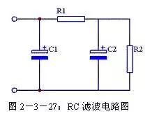 使用两个电容和一个电阻组成RC滤波电路,又称π型RC滤波电路。见图2-3-27所示。这种滤波电路由于增加了一个电阻R1,使交流纹波都分担在R1上。R1和C2越大滤波效果越好,但R1过大又会造成压降过大,减小了输出电压。一般R1应远小于R2。