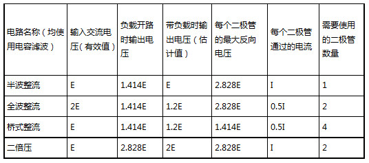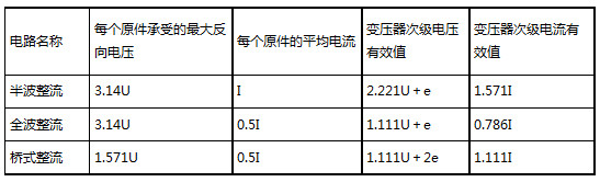 注:U为负载两端电压值;I为负载上电流值;e为整流二极管压降,一般取0.7V。