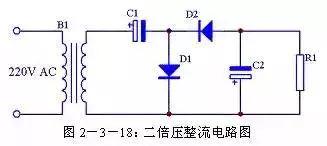 前面介绍的三种整流电路输出电压都小于输入交流电压的有效值,如果需要输出电压大于输入交流电压有效值时可以采用倍压电路,见图2-3-18。