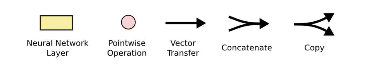 在解释LSTMs的详细结构时先定义一下图中各个符号的含义,符号包括下面几种