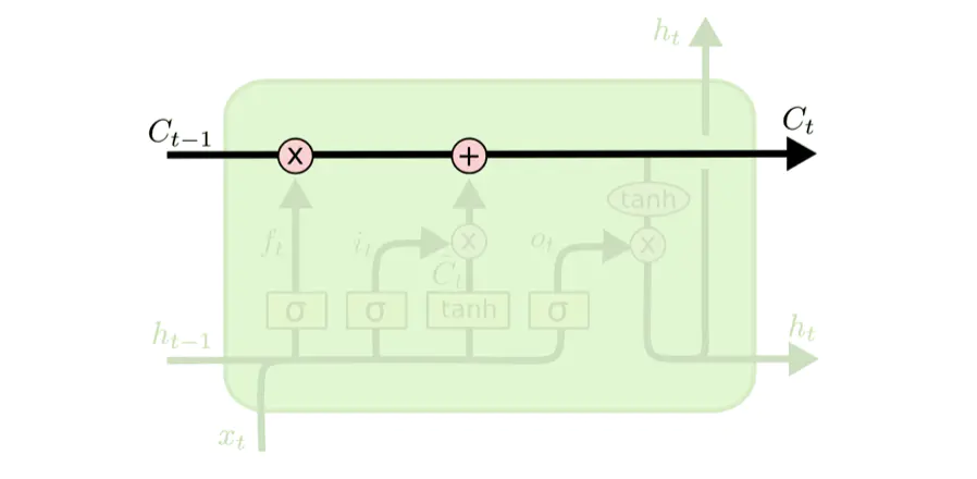 LSTMs的核心是细胞状态,用贯穿细胞的水平线表示。