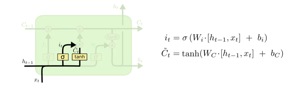 通过一个称为输入门的操作来决定更新哪些信息。然后利用