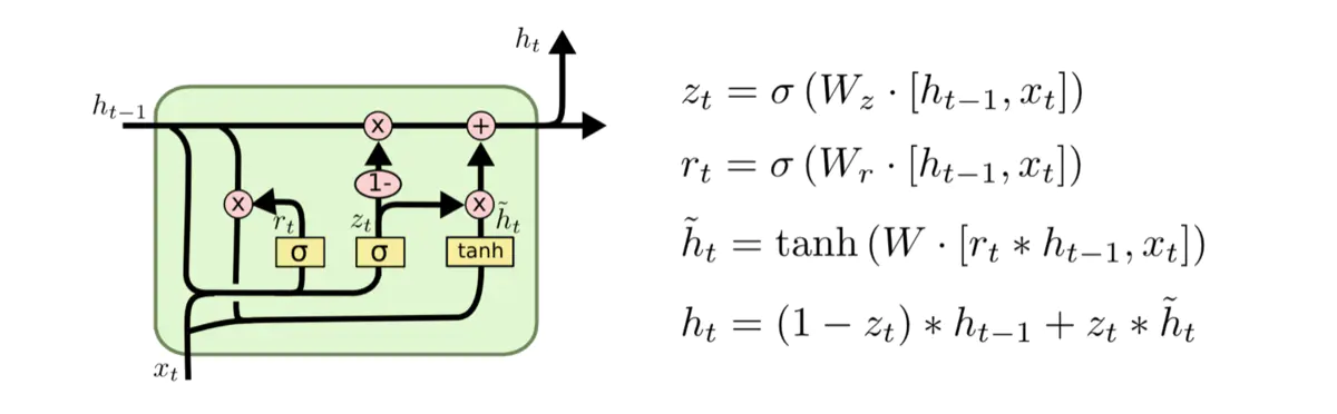 其中重置门为上图中前面那个门,决定了如何将新的输入信息与前面的记忆相结合。更新门为上图中后面那个门,定义了前面记忆保存到当前时间步的量。由于该变式的简单有效,后来被广泛应用。
