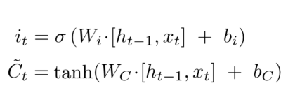 首先,我们将前一个隐藏状态和当前输入传递到sigmoid函数中,然后将新得到的细胞状态传递给tanh函数。