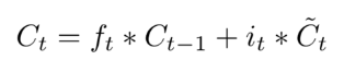 首先前一层的细胞状态与遗忘向量逐点相乘。如果它乘以接近 0 的值,意味着在新的细胞状态中,这些信息是需要丢弃掉的。然后再将该值与输入门的输出值逐点相加,将神经网络发现的新信息更新到细胞状态中去。至此,就得到了更新后的细胞状态。