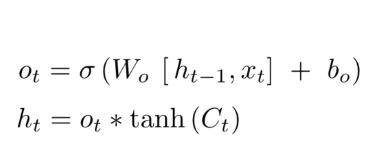 最后将sigmoid的输出值与tanh的输出值相乘,sigmoid的输出值决定tanh的输出值中哪些信息是重要且需要保存下来的。