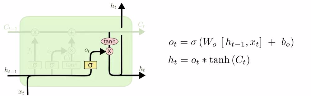 最终,我们需要确定输出什么值。这个输出将会基于我们的细胞状态,但是也是一个过滤后的版本。