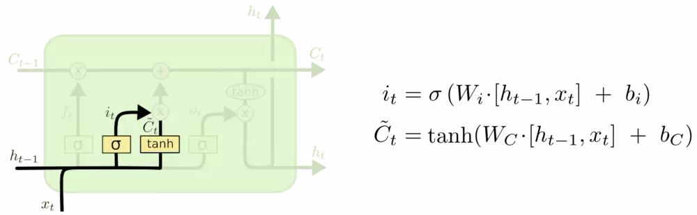 下一步是确定什么样的新信息被存放在细胞状态中。