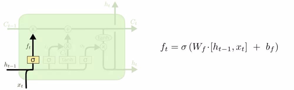 LSTM 中的第一步是决定我们会从细胞状态中丢弃什么信息。这个决定通过一个称为忘记门层完成。