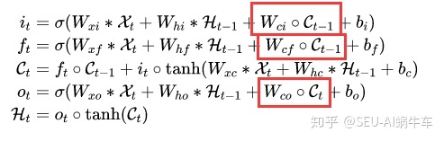 shixingjian博士提出的ConvLSTM通过他的描述来说应该就是其中的W也就是每个权重都从普通的全连接权重改为了卷积。 所以应该从左到右转变,正常来说右处应该是不存在i,f以及o三个门只由X和Ht-1决定,而没有C。 即不存在以下的结构。