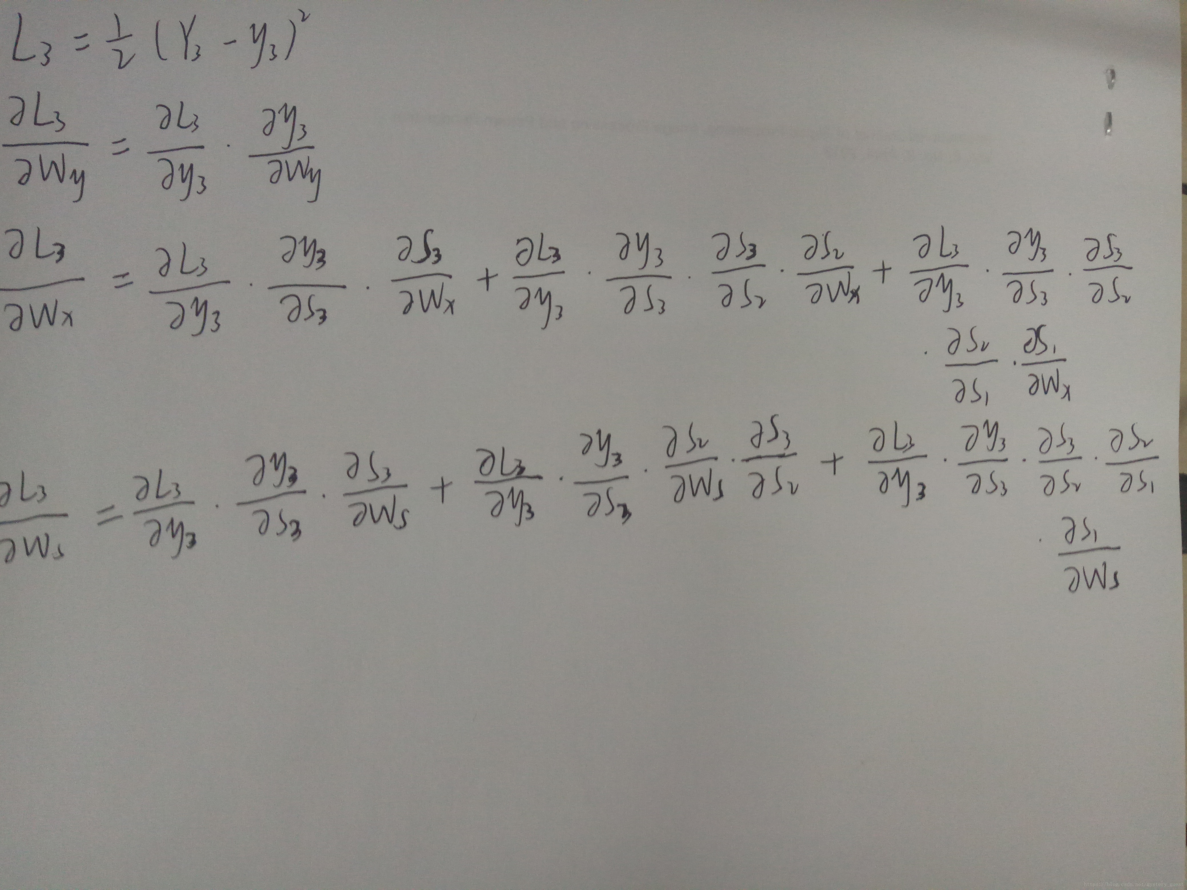 我们考虑t3时刻,对t3时刻的Wx、Ws、Wy求偏导: