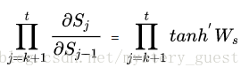 可以看出,激活函数tanh的导数是小于等于1的,训练的过程中大部分情况下也小于1,因为很少出现WxXj+WsSj-1+b1=0的情况。如果Ws是一个大于0小于1的值,那么当t很大时,