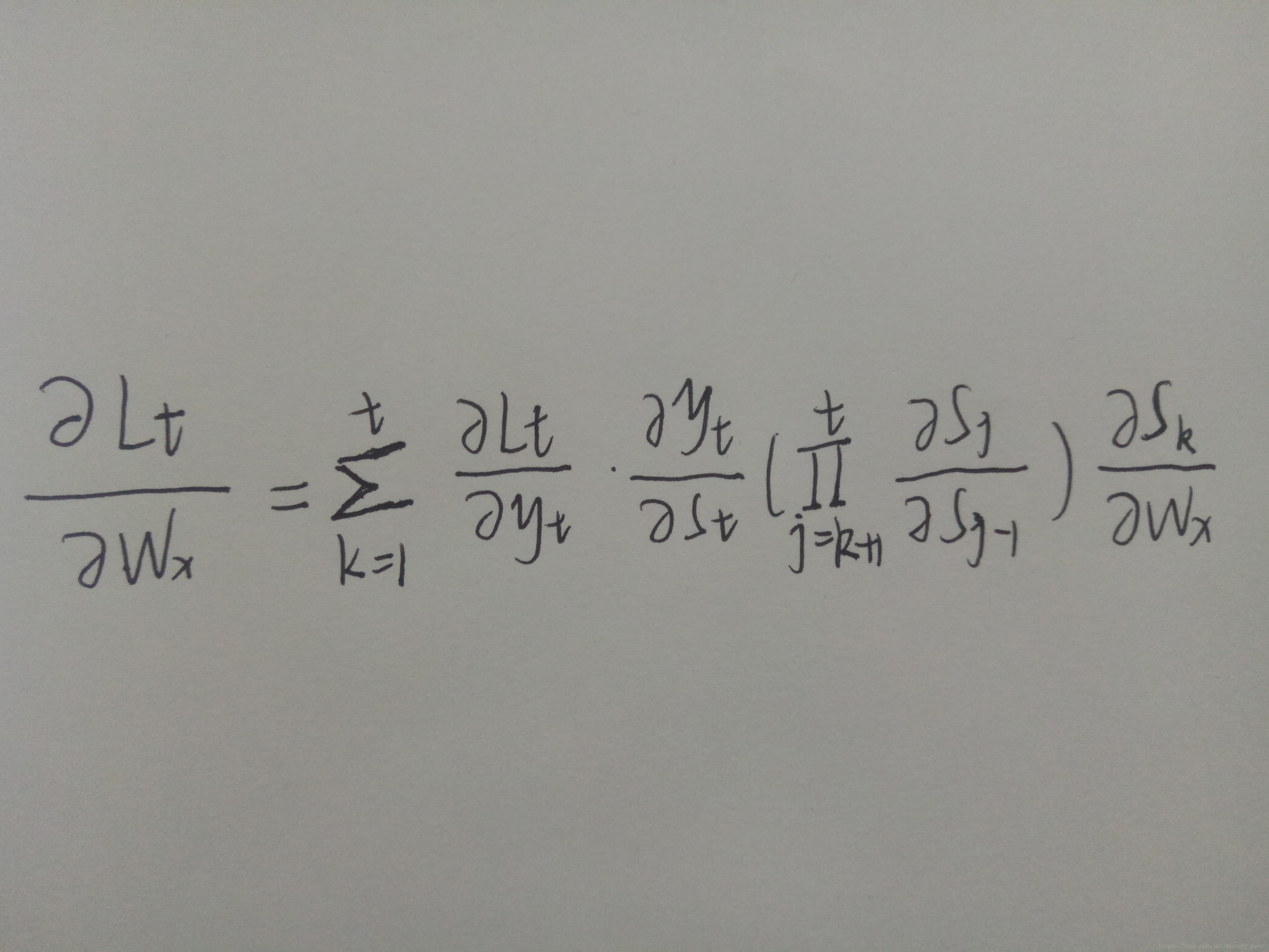 因此,根据上面的求偏导公式,可以得到任意时刻对Wx的求偏导公式:
