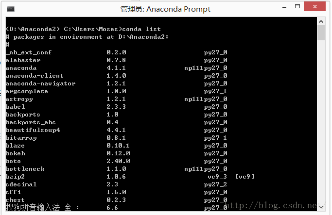 (安装完Anaconda ,我们可以打开anaconda prompt,输入conda list,会显示现在的已经安装好的开源包。)