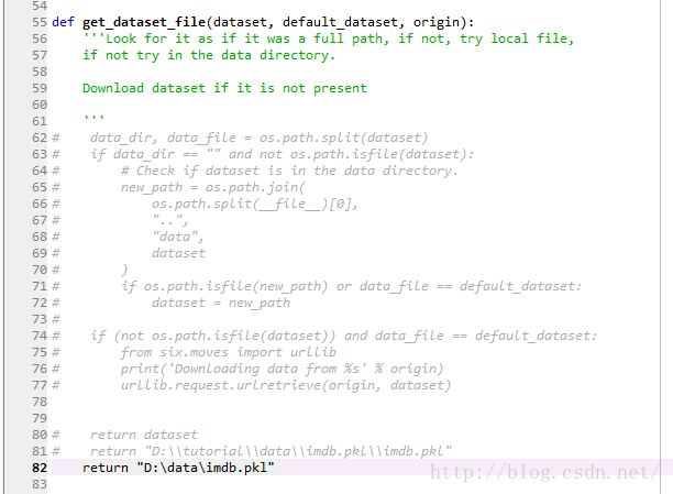在测试 例程 之前,我们还需要修改一下 imdb.py中的get_dataset_file函数。