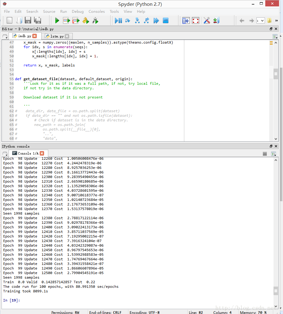下载 :lstm.py :http://deeplearning.net/tutorial/code/lstm.py