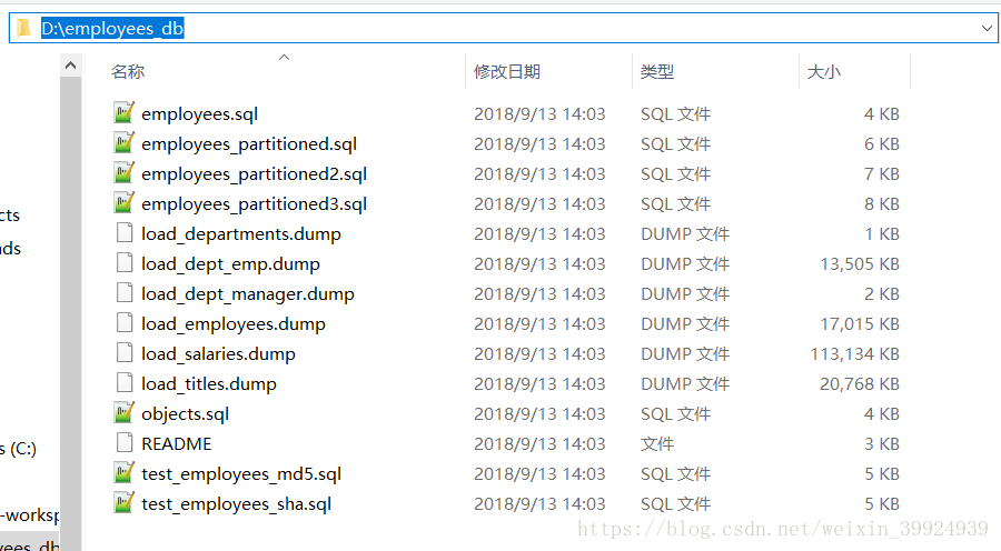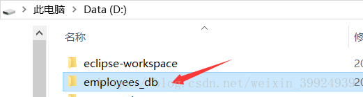 在employees_db文件夹内打开命令行,上方输入cmd后回车即可